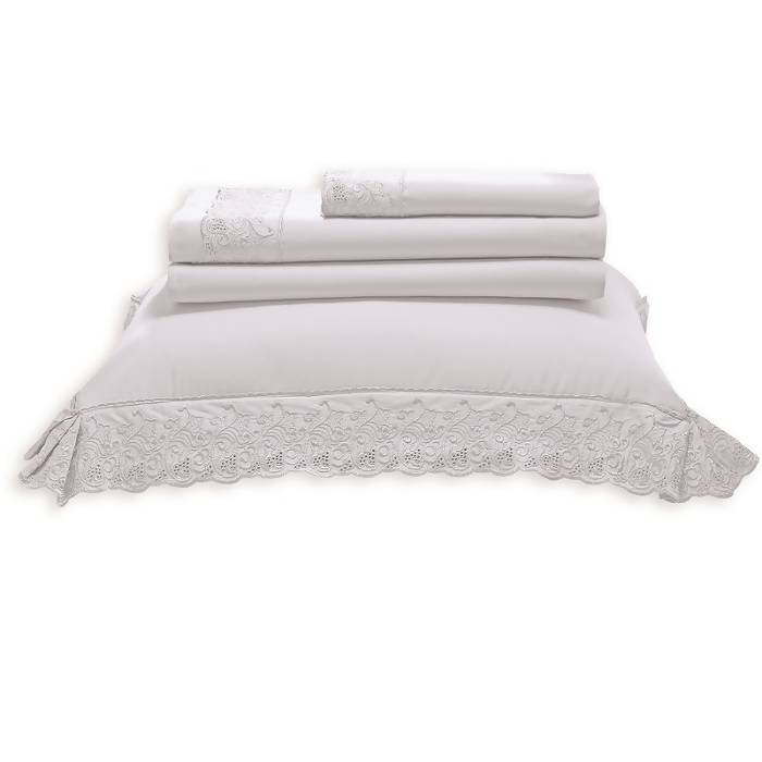Jogo de Cama 180 fios com Renda e Dobra Feita Bouton Nadia