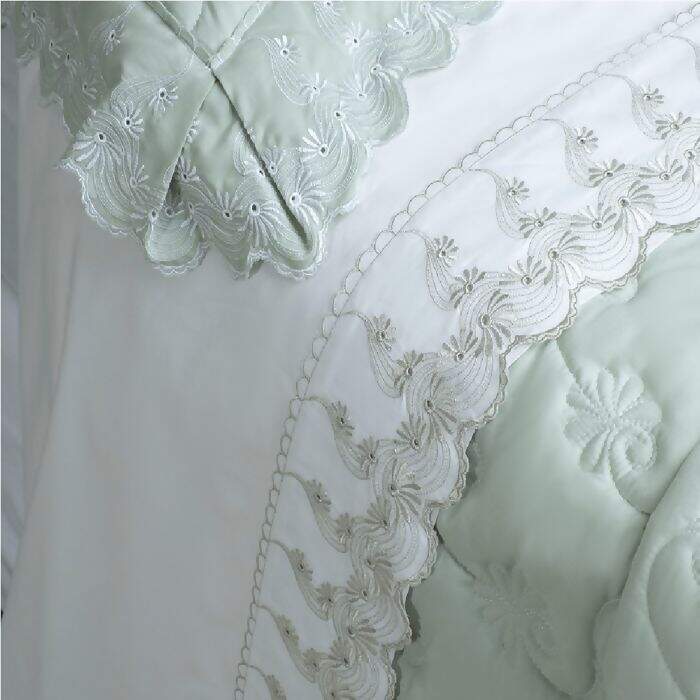 O jogo de lençol Analiza é produzido em 100% algodão 200 fios e conta com tira ricamente bordada que é a especialidade da Marken Fassi. Além do toque macio e suave, sua beleza se realça, pois, conta com duas fronhas bordadas em três abas, um maravilhoso lençol acetinado com elástico e um virol ricamente bordado.