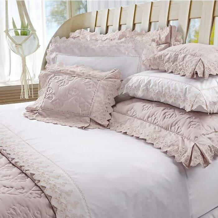 Jogo de Cama 200 Fios Bordado Tulip Branco com Rosa King - Marken Fassi