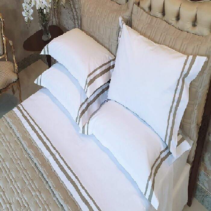 Descrição Jogo de Cama 200 fios Davos Branco com Bege Solteiro - Marken Fassi