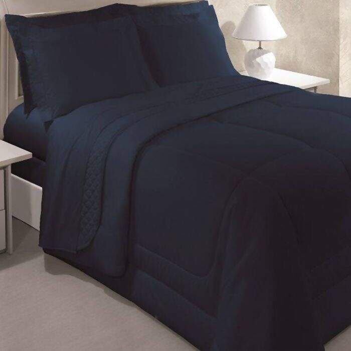 Descrição Jogo de Cama 200 Fios Vida Bela Liso Azul Taurus Solteiro 3 peças - Kacyumara