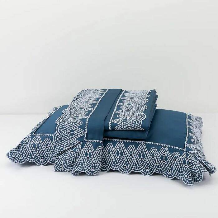 Jogo de Cama Artelassê Classic Bordado Biarritz 300 Fios Azul Mediterrâneo
