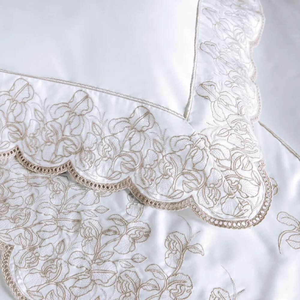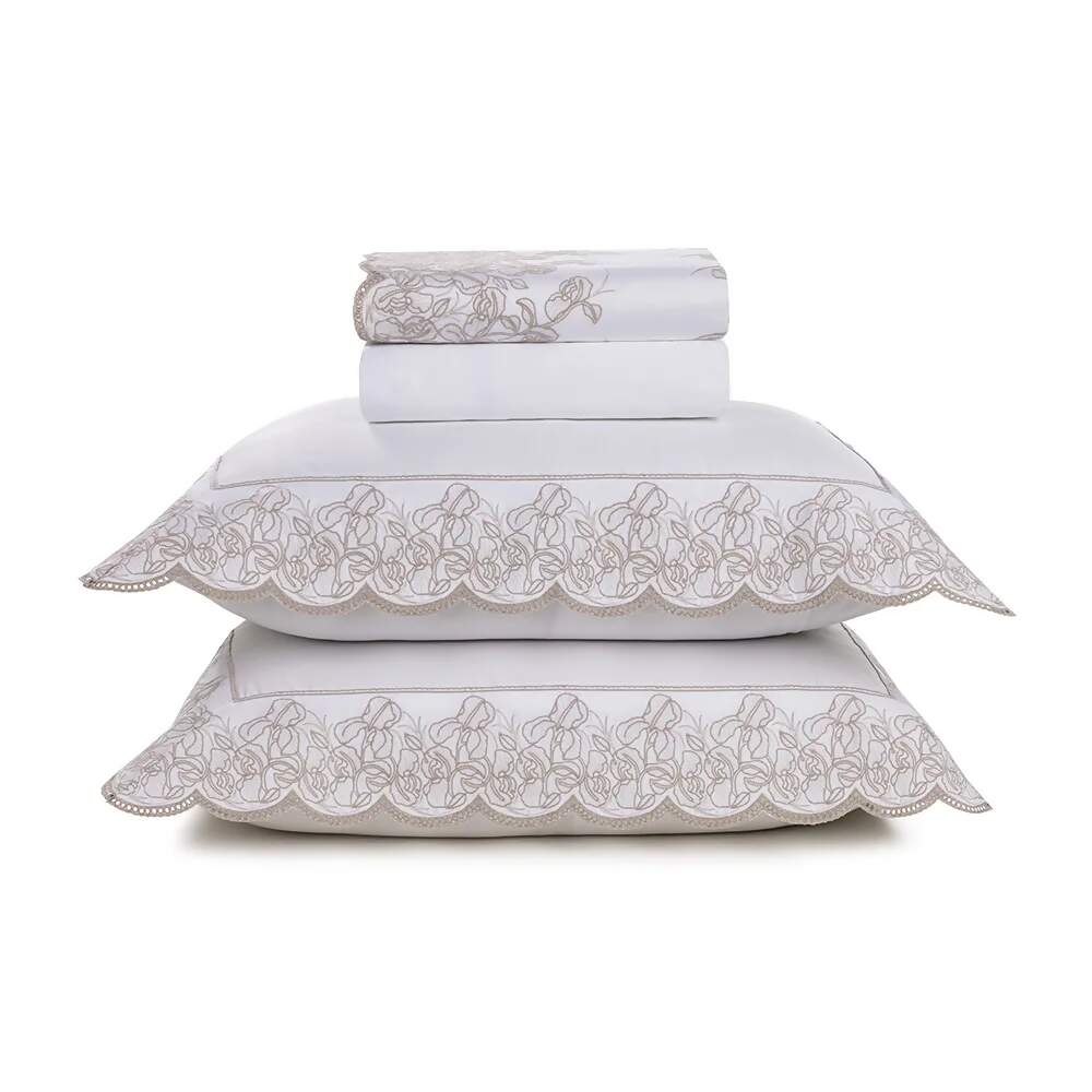 Jogo de Cama 300 Fios Bordado Cascine Branco com Legno Queen - Trussardi