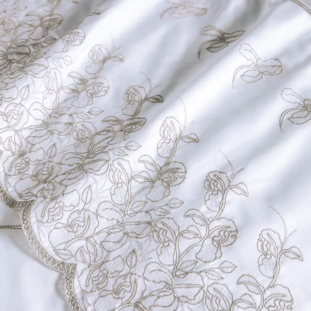 Descrição Jogo de Cama 300 Fios Bordado Cascine Branco com Legno Queen - Trussardi