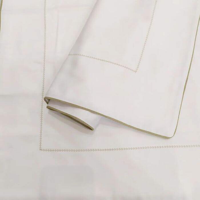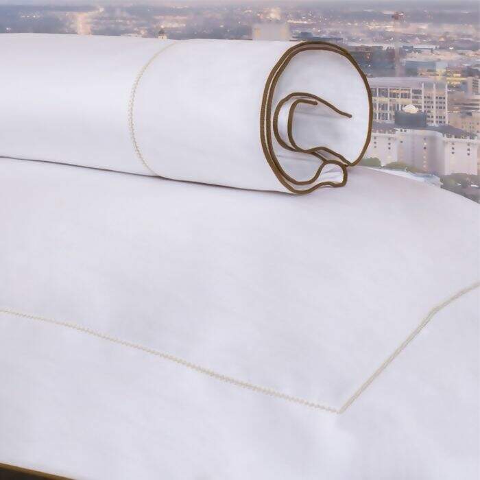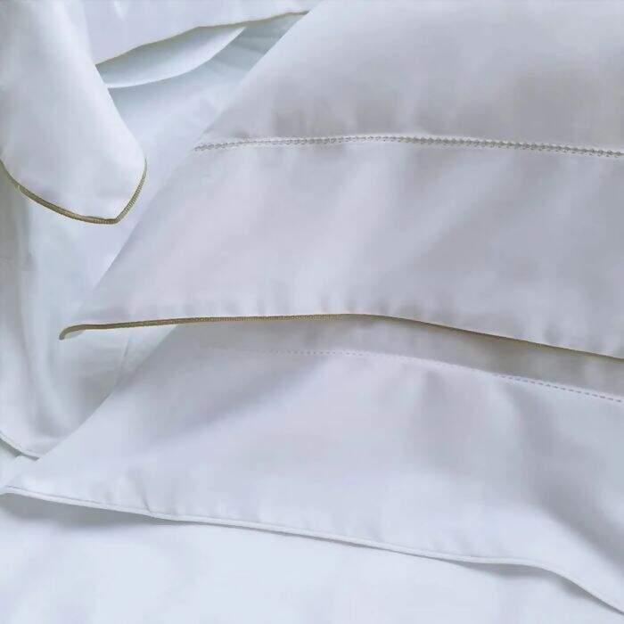 Jogo de Cama 300 Fios Bordado Constantine Branca com Bege King - Marken Fassi