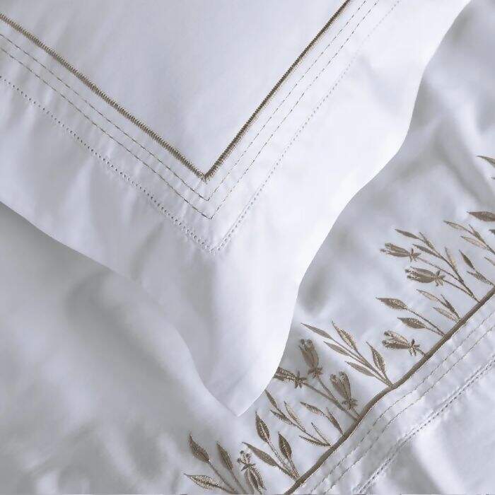 Descrição Jogo de Cama 300 Fios Bordado Flora Branco com Legno Queen - Trussardi