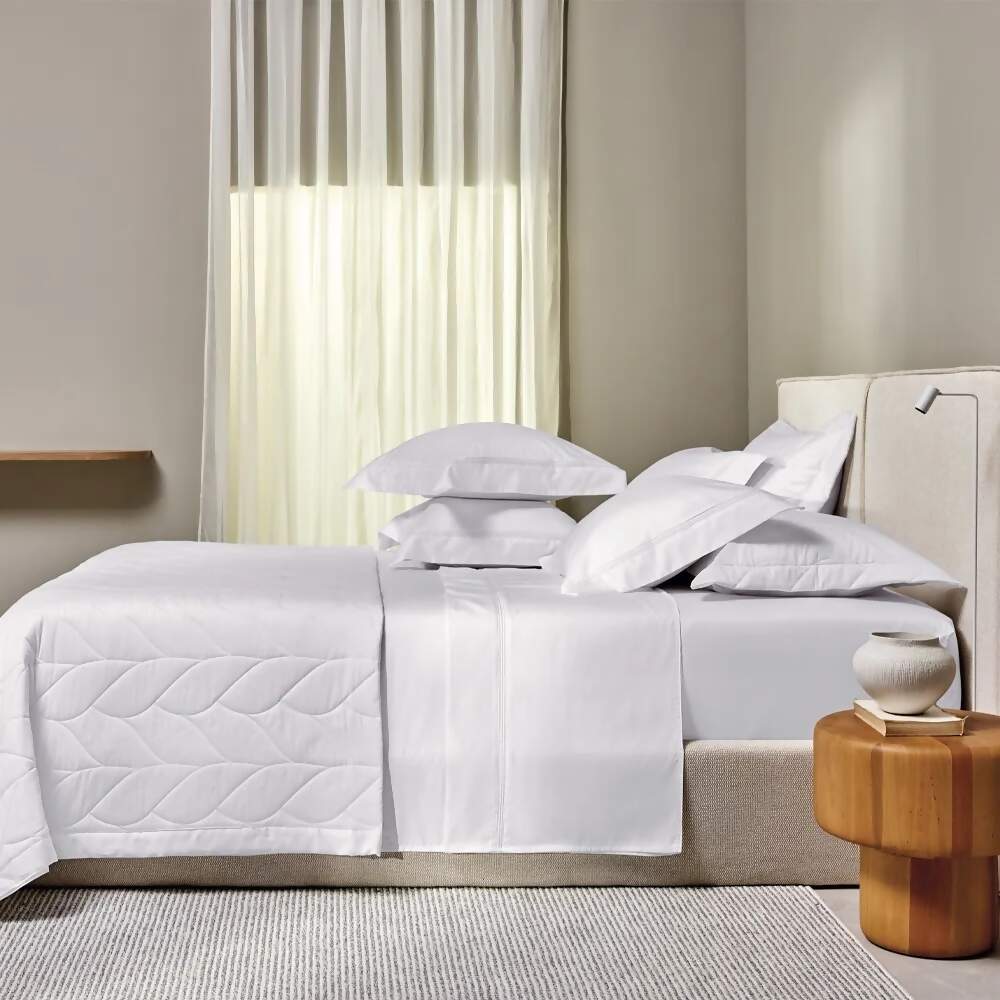O Jogo de Cama Queen Piaceri Trussardi traz um toque de sofisticação ao seu quarto com sua cor Branca impecável. Feito de Cetim 300 fios 100% Algodão Egípcio, proporciona uma suavidade e um conforto que fazem toda a diferença. As fronhas com 3 abas são detalhadas com entremeio bordado, enquanto o lençol com elástico assegura um ajuste seguro e confortável. A dobra com entremeio bordado adiciona um acabamento elegante. Inspirado nas encantadoras paisagens de Cinque Terre, este jogo de cama é uma ode à leveza e à beleza, transformando seu quarto em um refúgio de charme e tranquilidade, onde cada detalhe é pensado para proporcionar uma experiência de descanso verdadeiramente especial.