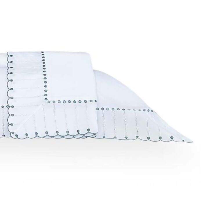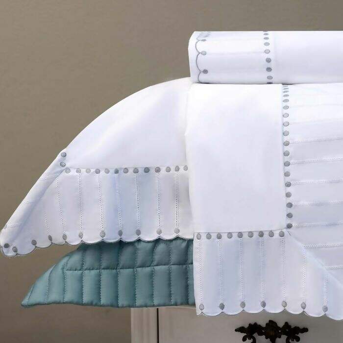 Descrição Jogo de Cama 300 Fios Bordado Poá Branco com Verde Casal - Marken Fassi