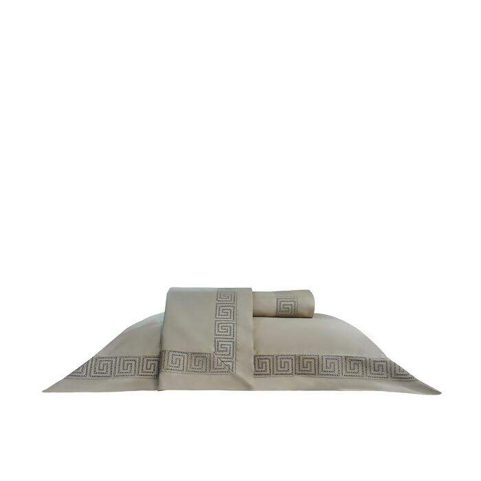 Jogo de Cama 300 Fios Bordado Romana Bege King - Marken Fassi