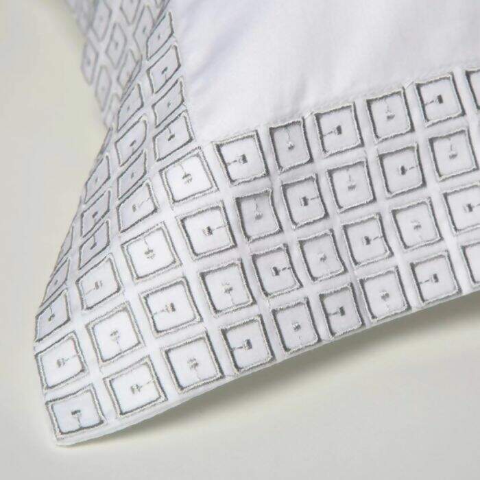 Descrição Jogo de Cama 300 Fios Bordado The 325 Kent Branco / Cinza Queen - By the Bed