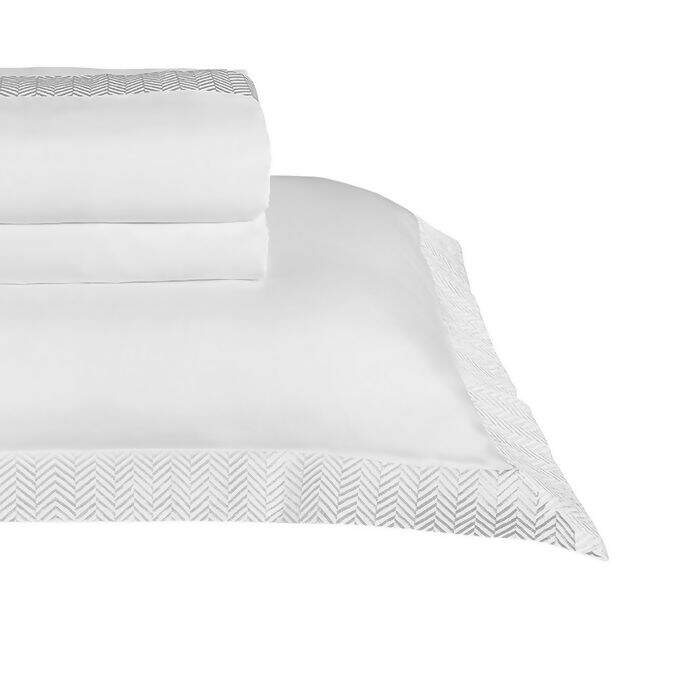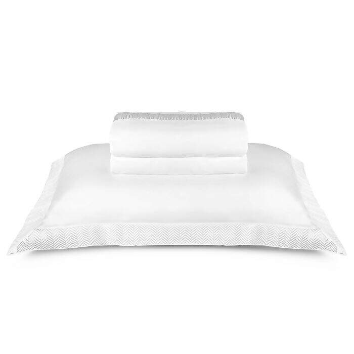 Descrição Jogo de Cama 300 Fios Bordado The East V Branco Queen - By the Bed