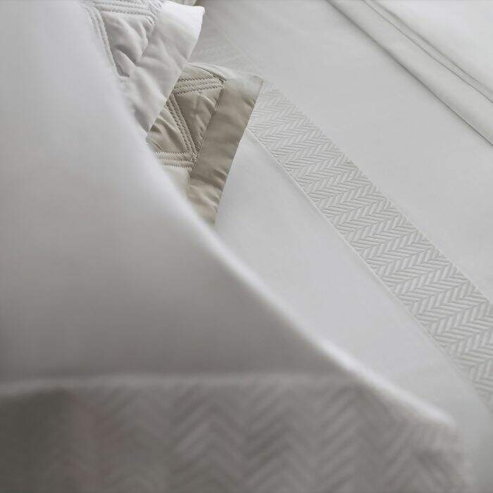 O desenho que corta a fachada dos prédios inspira o padrão luxuoso presente nos bordados desta linha, que já virou uma assinatura ByTheBed.