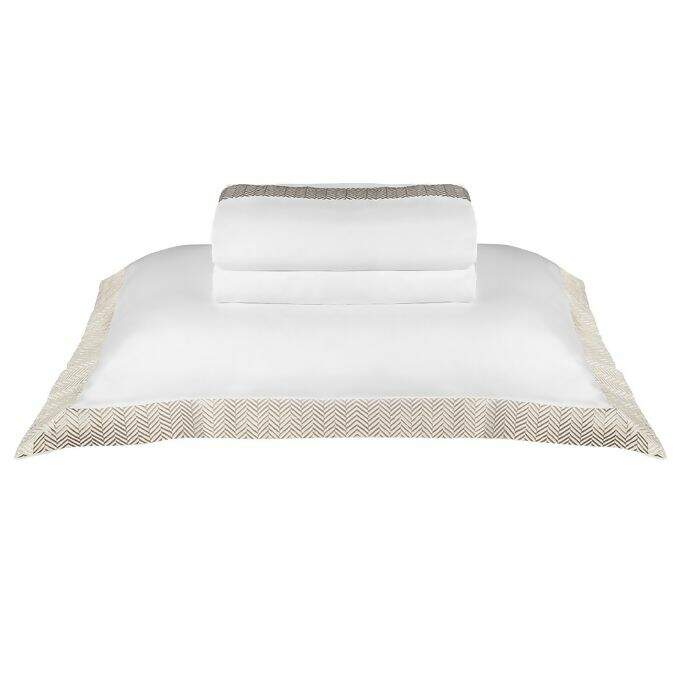 Descrição Jogo de Cama 300 Fios Bordado The East V Branco / Bege Casal - By the Bed