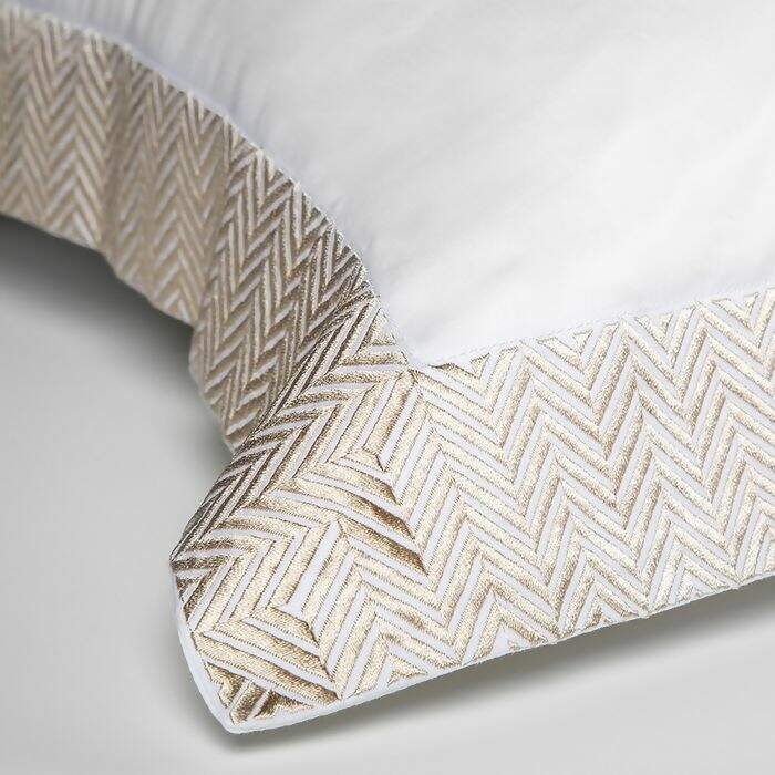 O desenho que corta a fachada dos prédios inspira o padrão luxuoso presente nos bordados desta linha, que já virou uma assinatura ByTheBed.