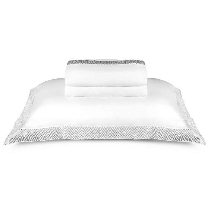 Jogo de Cama 300 Fios Bordado The East V Branco / Cinza Queen - By the Bed