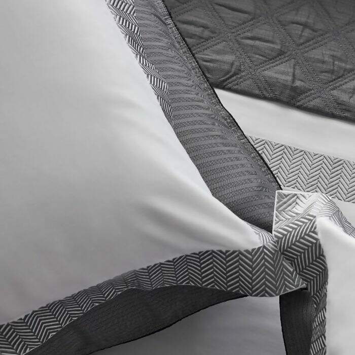 O desenho que corta a fachada dos prédios inspira o padrão luxuoso presente nos bordados desta linha, que já virou uma assinatura ByTheBed.