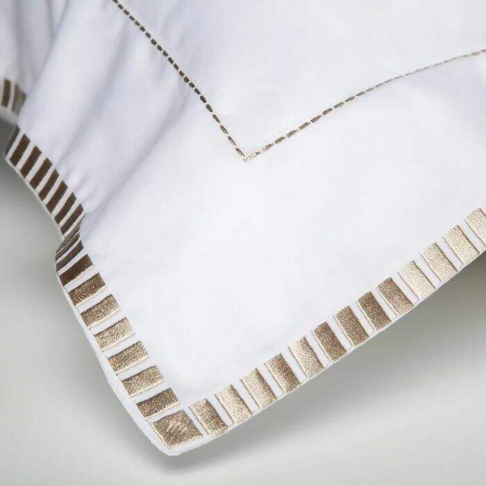 Descrição Jogo de Cama 300 Fios Bordado The Public Branco / Bege Queen - By the Bed