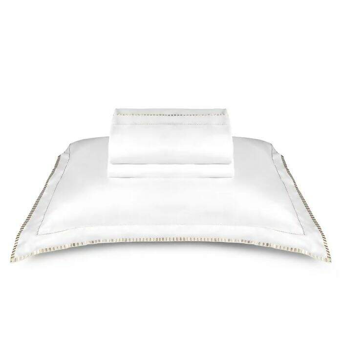 Jogo de Cama 300 Fios Bordado The Public Branco / Bege Queen - By the Bed