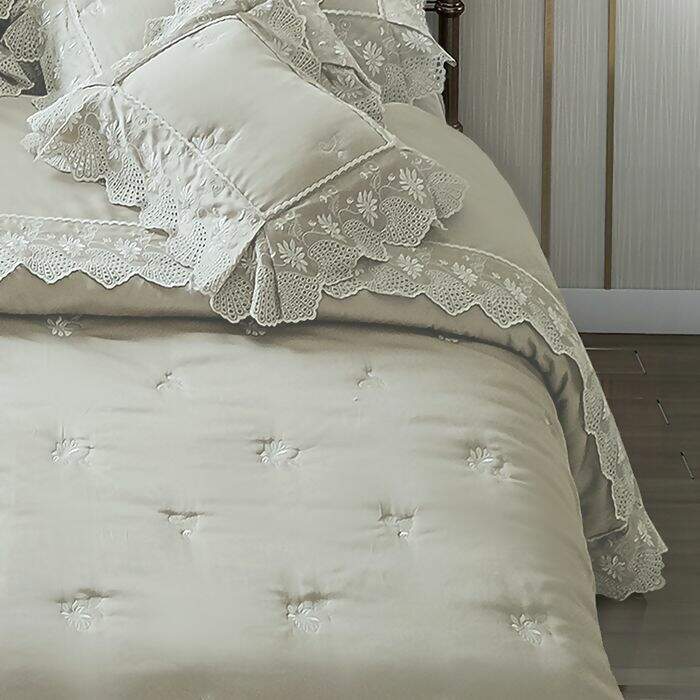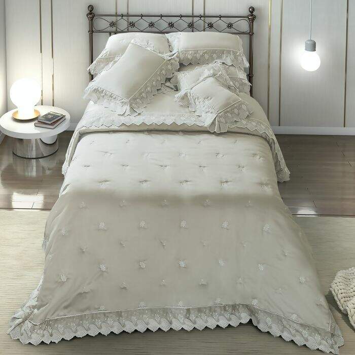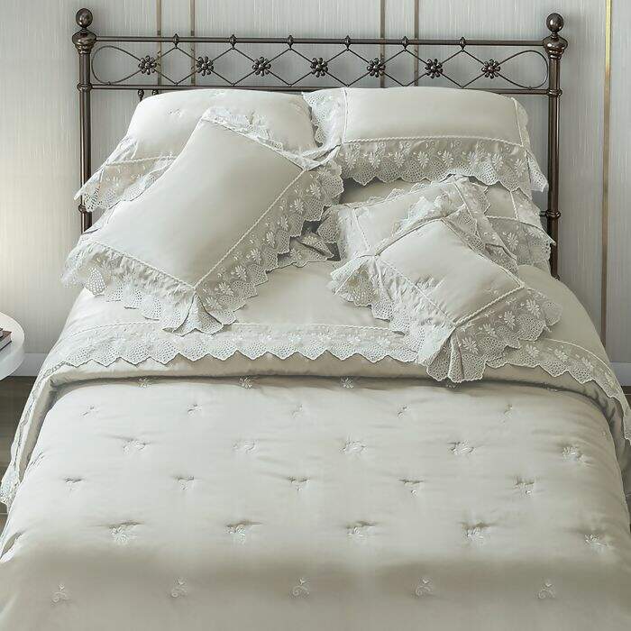 Descrição Jogo de Cama 300 Fios Bordado Vitalle Bege King - Marken Fassi