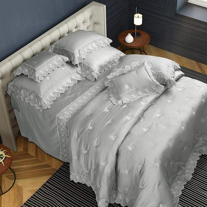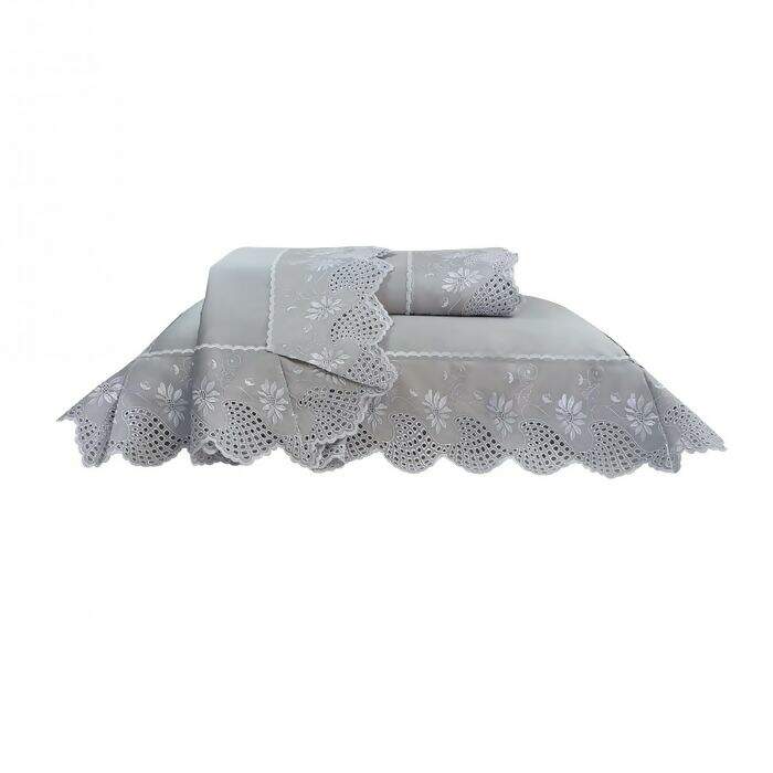Jogo de Cama 300 Fios Bordado Vitalle Cinza Queen - Marken Fassi