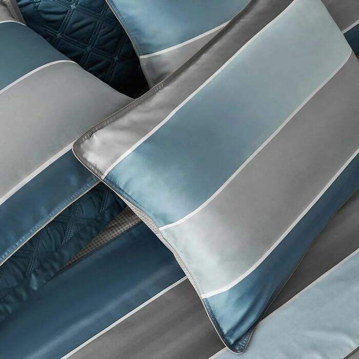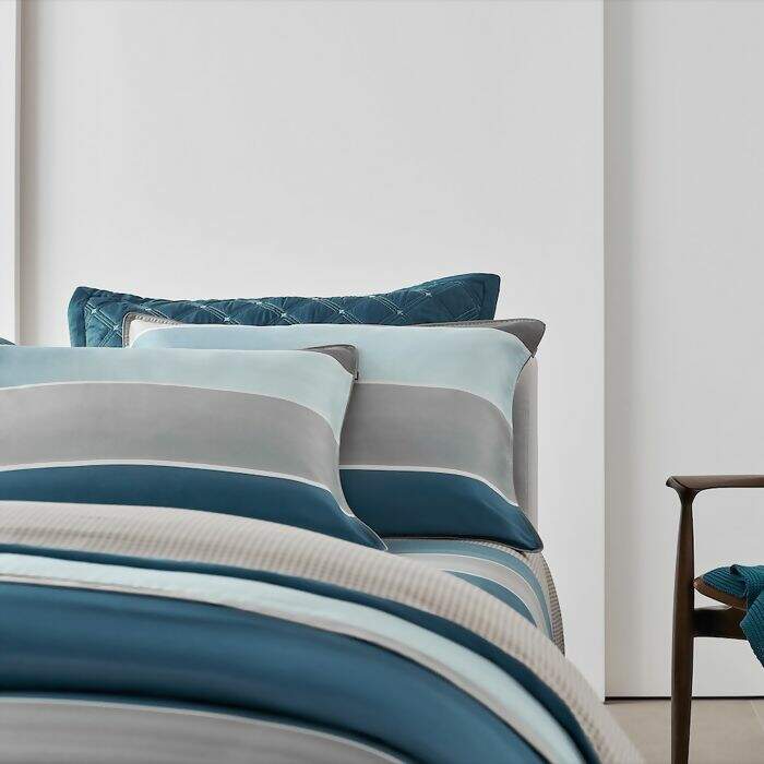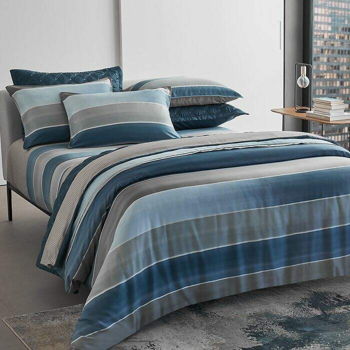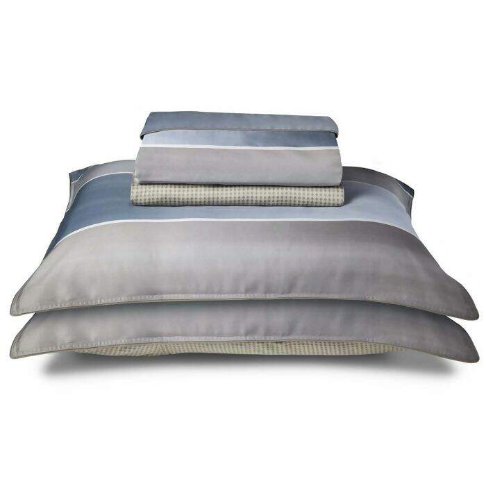 Nessa estampa, a arquitetura espelhada do Seagram traz para a cama uma fluidez inigualável na transição de cores.