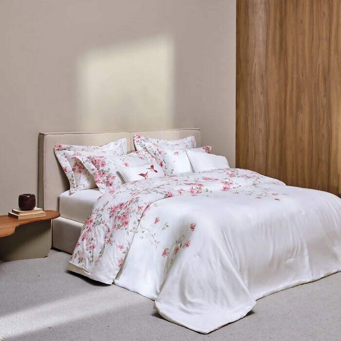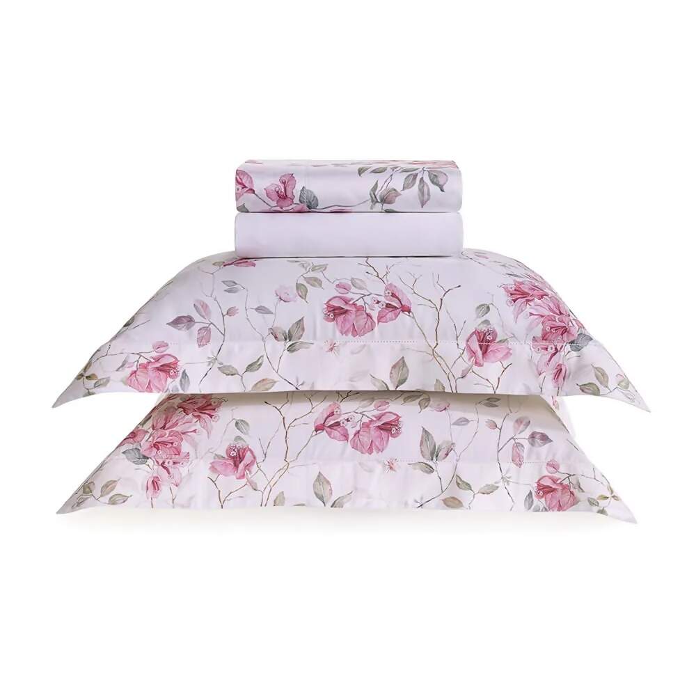 O Jogo de Cama Casal Venere, confeccionado em cetim 300 fios e 100% algodão egípcio, mergulha na essência vibrante da natureza de Cinque Terre. Com estamparia digital que retrata a exuberância das bougainvílias que florescem ao longo da costa italiana, este conjunto traz um toque de arte para o seu ambiente. A fronha com 3 abas apresenta uma estampa dimensionada, destacada pelo acabamento em ponto ajour, que confere elegância e delicadeza. A dobra feita estampada do sobre lençol completam o design, criando uma atmosfera que evoca a serenidade de um jardim em sua casa.