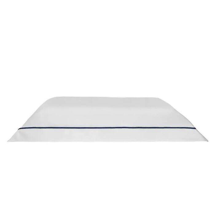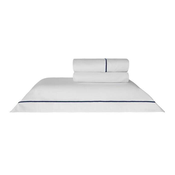 Jogo de Cama 300 Fios Lazio Liso Branco / Marinho com Festonê Casal Kacyumara