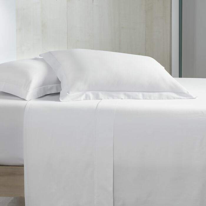 Confeccionado com o mais puro percal de 300 fios 100% algodão, possui toque acetinado, frescor e fino acabamento, com festonê nas 4 abas das fronhas e na vira do sobre-lençol.