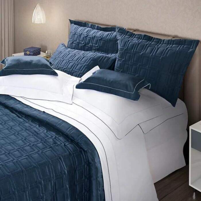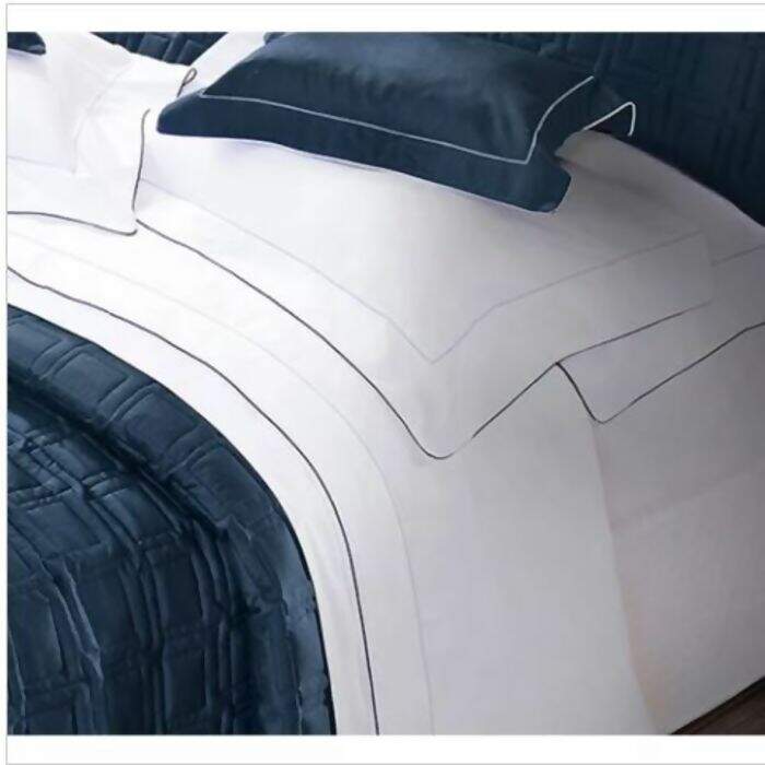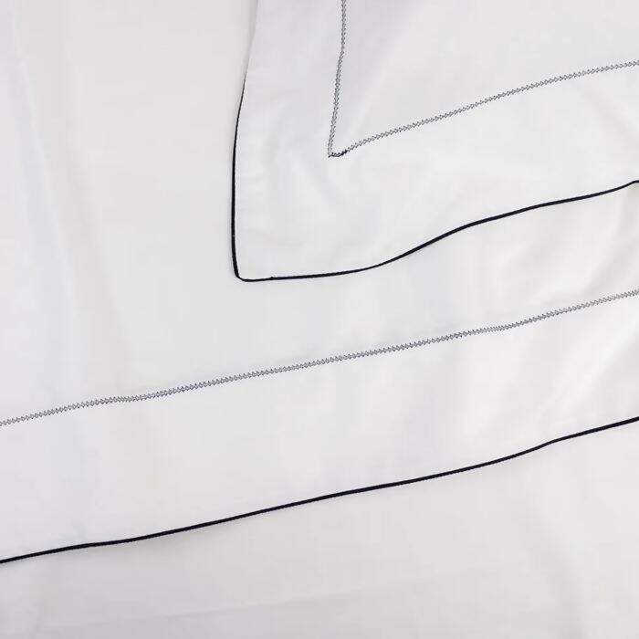 Jogo de Cama 300 Fios Percal Constantine Branco com Marinho Solteiro - Marken Fassi