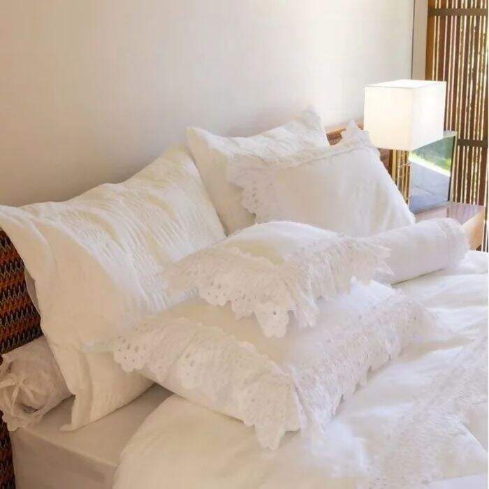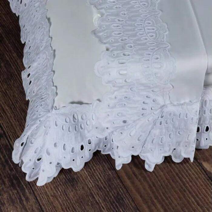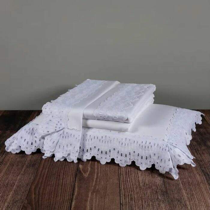 Jogo de lençol confeccionado em algodão egípcio 400 Fios com toque acetinado e aplicação de renda em 03 lados da fronha e na vira do lençol.
