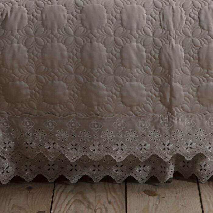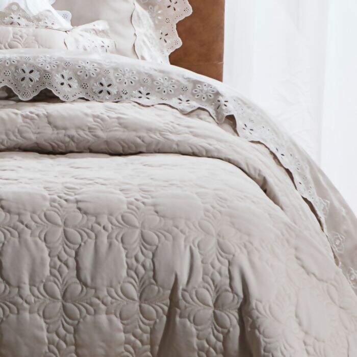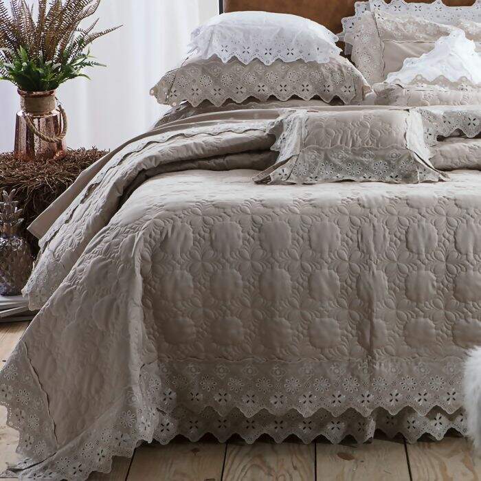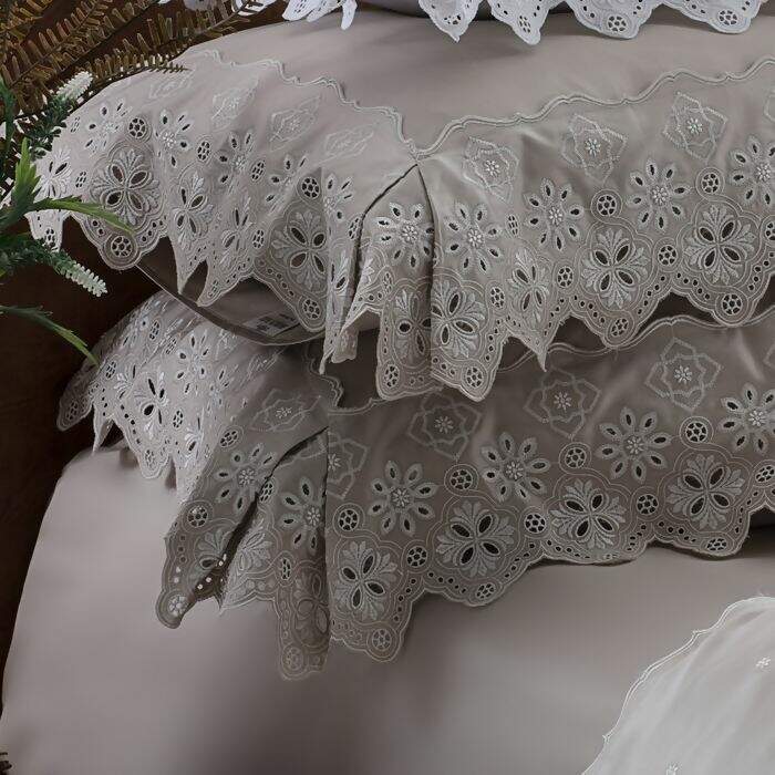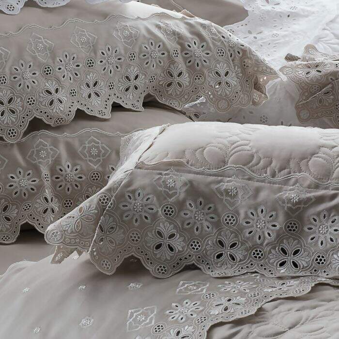 Jogo de Cama 400 Fios Bordado Laguna Bege / Crú King - Marken Fassi