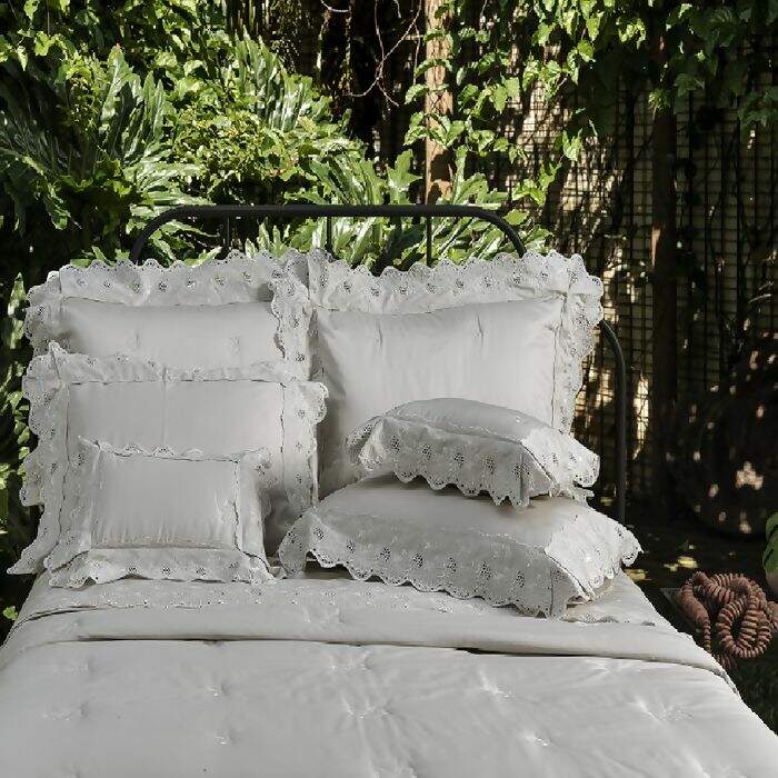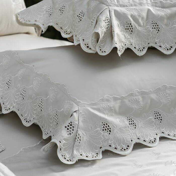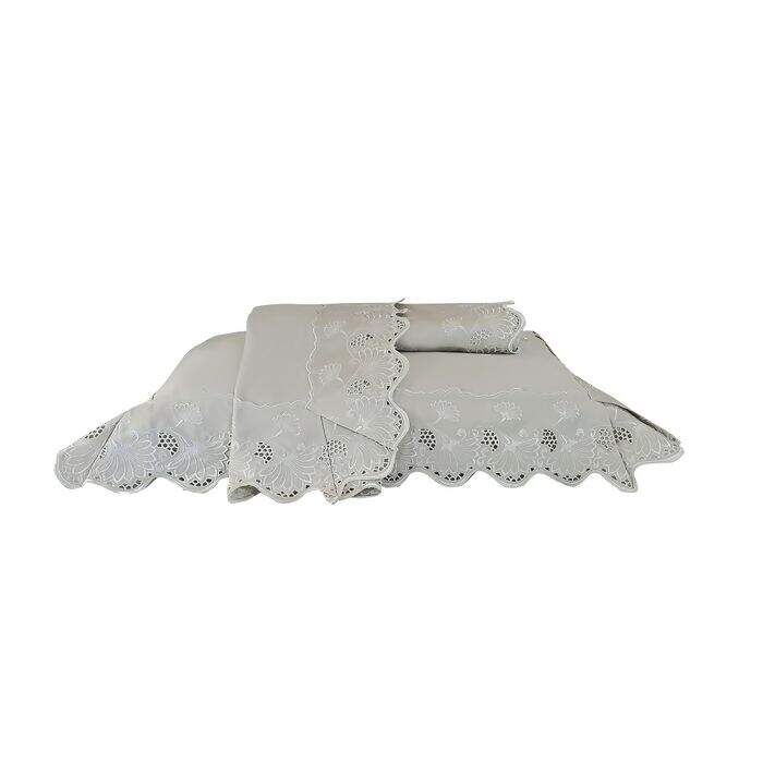 O Jogo de cama Diamante 400 Fios nos brinda com bordado de folhagens e pequenos arabescos. É confeccionado em algodão egípcio de 400 Fios, com toque acetinado, garantindo uma cama linda e confortável