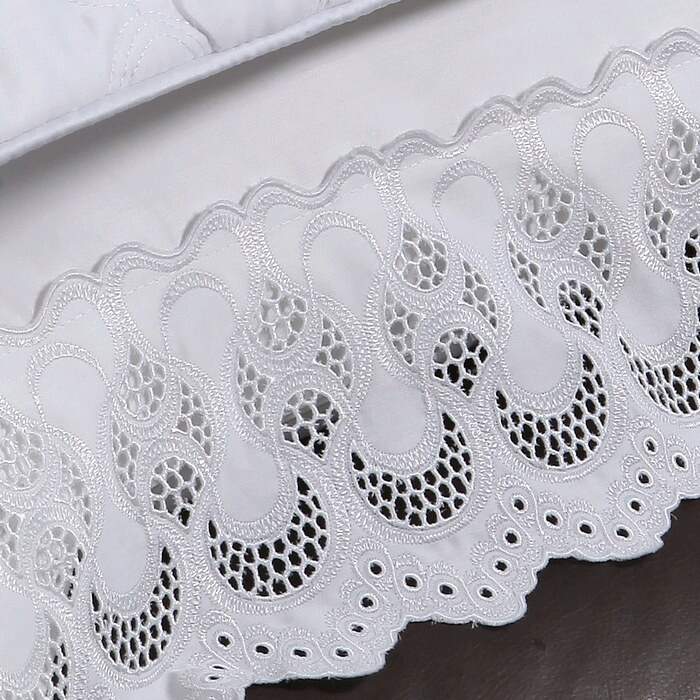 Descrição Jogo de Cama 600 Fios Bordado Reggence Branco Queen - Marken Fassi