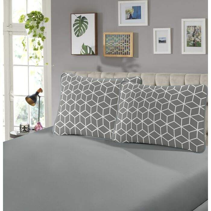 A Praticidade da combinação de Lençol em Malha Liso com fronhas estampadas.