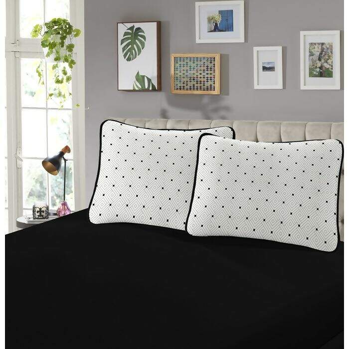 A Praticidade da combinação de Lençol em Malha Liso com fronhas estampadas.