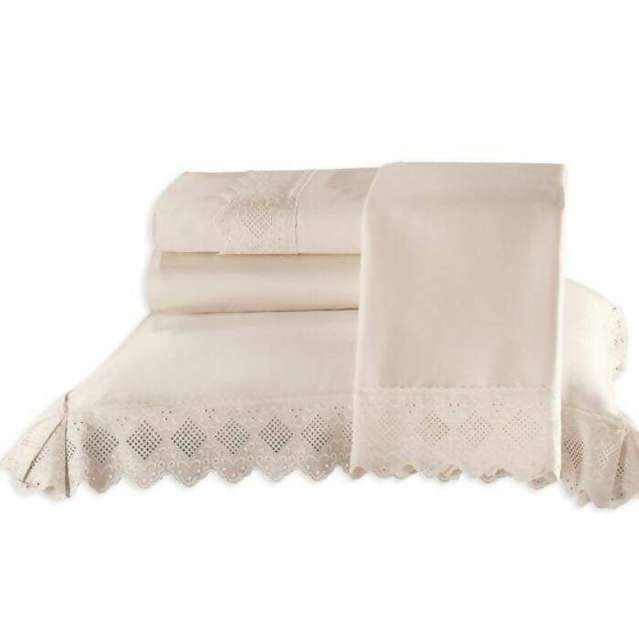 - Jogo de Cama com aplicação de Renda Bordada em Percal 300 fios! Um luxo da linha Nobre Buettner.