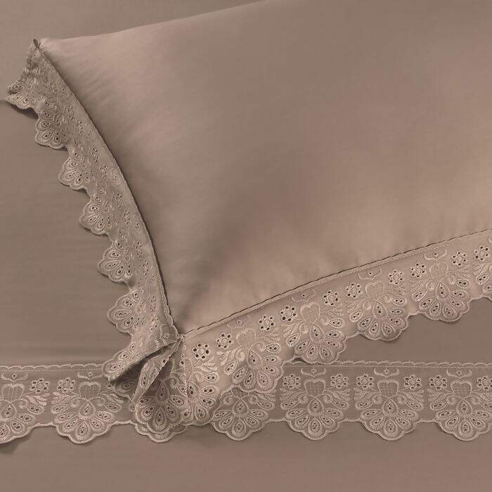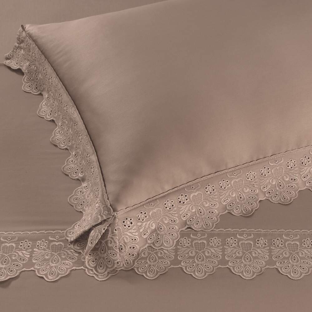 - Jogo de Cama com aplicação de Renda Bordada em Percal 300 fios! Um luxo da linha Nobre Buettner.