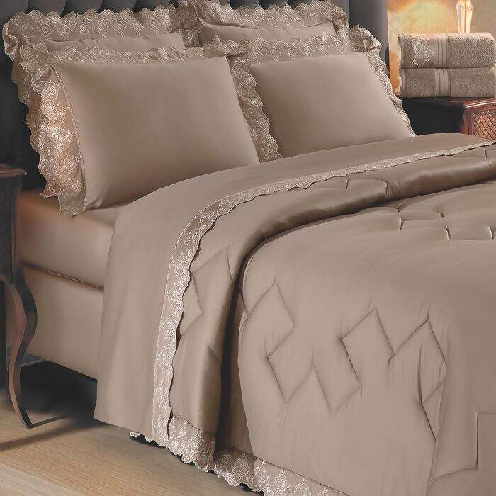Descrição Jogo de Cama Cristal Rose 300 Fios Caqui King - Buettner