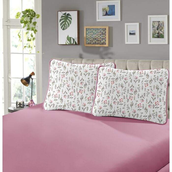 A Praticidade da combinação de Lençol em Malha Liso com fronhas estampadas.