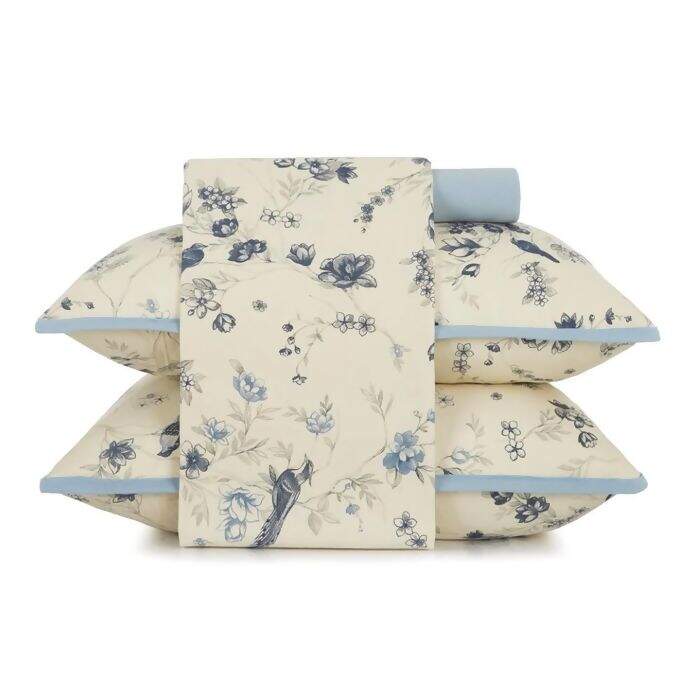 Descrição Jogo de Cama Malha com Viés Botanical Blue Casal 4pç - Altenburg