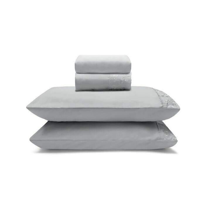 Jogo de Cama MicroFibra Sonata Renda Naira Cinza Casal 4pçs - Buettner