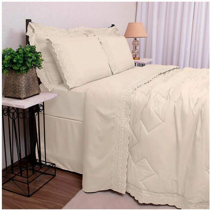 Jogo de Cama MicroFibra Sonata Renda Naira Pérola Queen 4pçs - Buettner