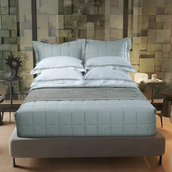 Piazza nos brinda com bordado reto em duas cores no fundo branco, traduzindo sua personalidade. É atemporal, contemporâneo de toque macio e aconchegante. Sua característica sóbria e discreta faz com que Piazza seja uma excelente opção para ser coordenado com diversas roupas de cama. O jogo é composto por lençol com virol, lençol com elástico e fronhas com abas.