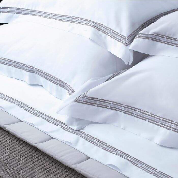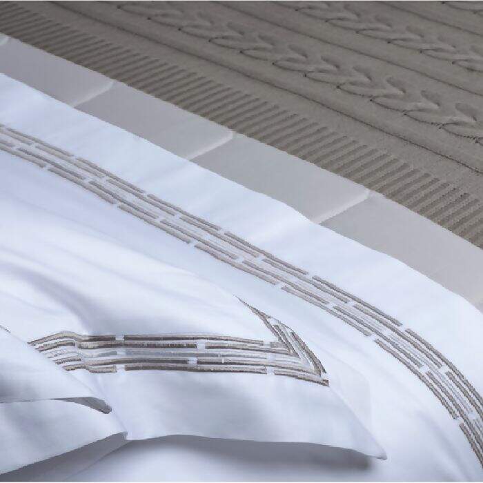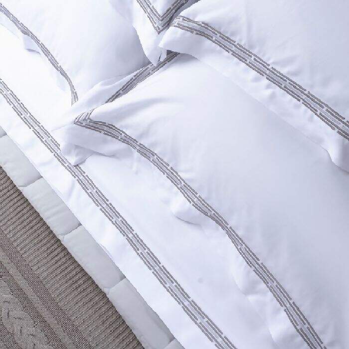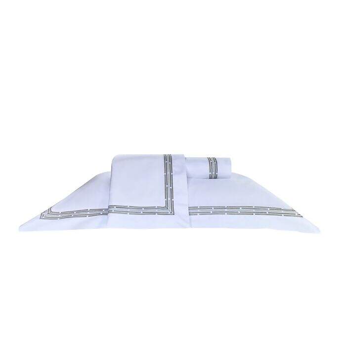 Descrição Jogo de Cama Piazza Branco com Cinza Queen - Marken Fassi