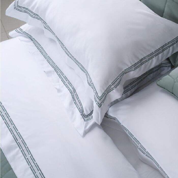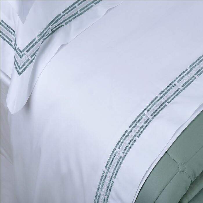Descrição Jogo de Cama Piazza Branco com Verde King - Marken Fassi