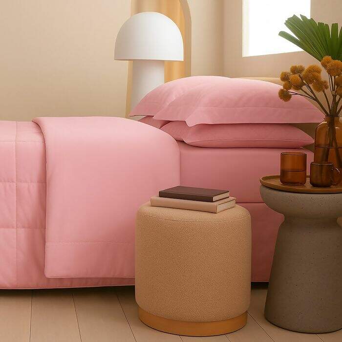 Jogo de Cama Privilége Percal 200 Fios Rosa Ballet 3pç Solteiro King - Andreza