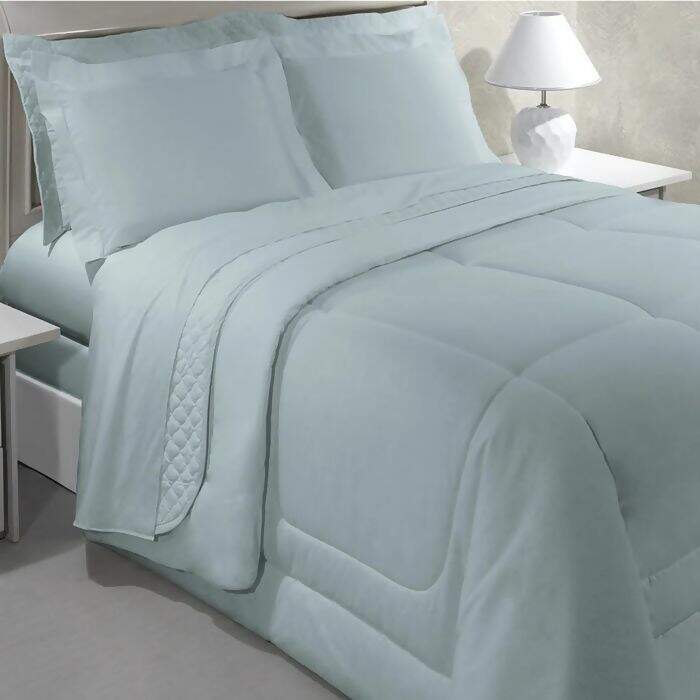 Descrição Jogo de Cama Vida Bela 200 Fios Liso Verde Benit Casal - Kacyumara