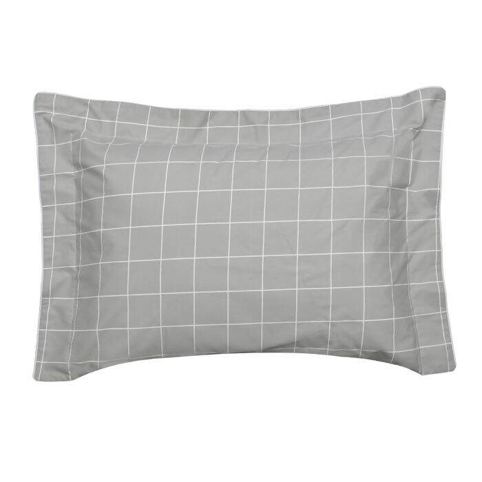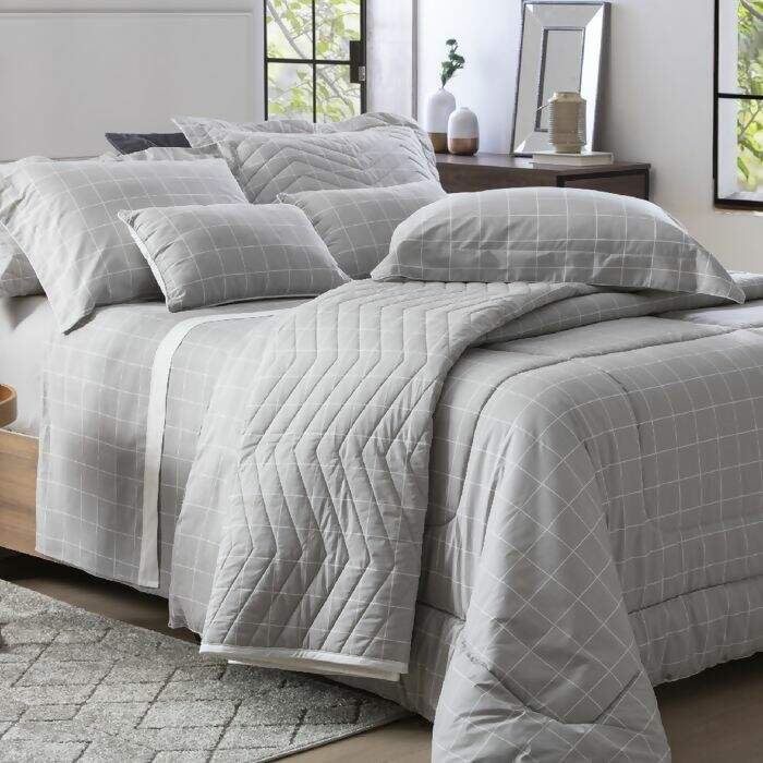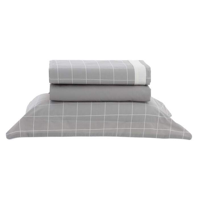 Jogo de Cama Vintage 200 Fios Quadros Mood (Cinza) Solteiro - Kacyumara