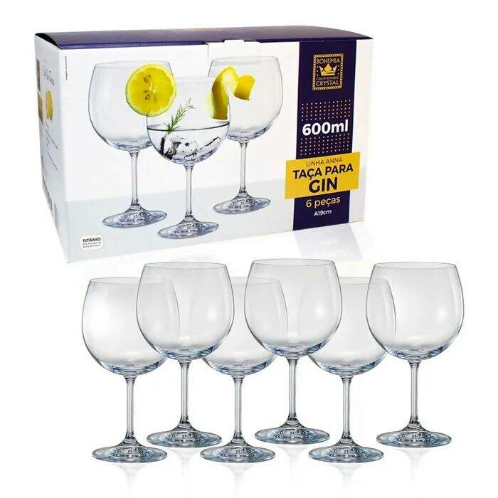 Cristais Jogo de Taças Anna em Cristal para Gin Tônica 600ml 6pçs - Bohemia