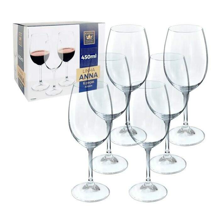 Cristais Jogo de Taças Anna em Cristal para Vinho Tinto 450ml 6pçs - Bohemia